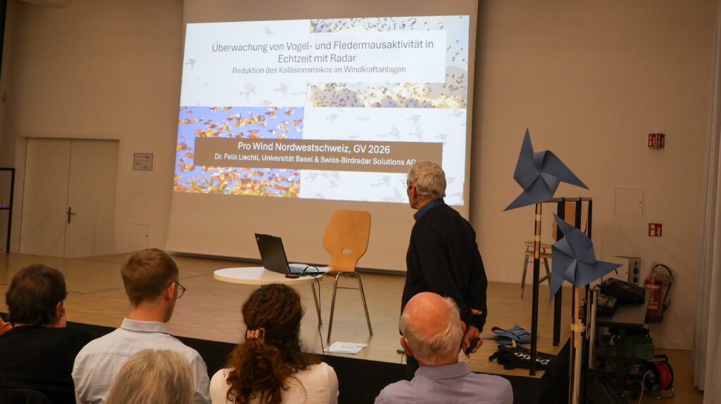 2.1 Milliarden Zugvögel fliegen jedes Jahr über Mitteleuropa. Mit Forschungsarbeiten, zum Beispiel an der Vogelwarte Sempach, konnte gezeigt werden, dass die Vögel meist nachts fliegen, und zwar nicht in lokalen Schwärmen, sondern eher flächendeckend. Im Zusammenwirken von Forschung und Birdradar-Anlagen können Tage prognostiziert werden, an denen viele Vögel tief über die Schweiz fliegen. Es ist eine wichtige Interessensabwägung, wann Windenergieanlagen abgestellt werden.