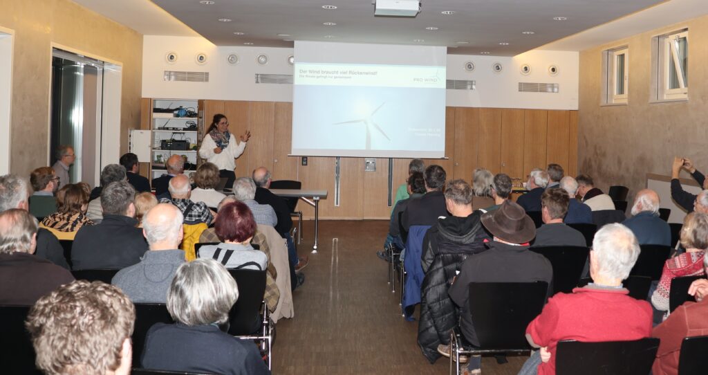 Den Abschluss der Präsentationen markierte Sabine Mehring von Pro Wind: „Pro Wind Nordwestschweiz setzt sich dafür ein, auf verschiedenen Ebenen eine faktenbasierte Diskussion über Windenergie zu führen. Uns ist es ein Anliegen die Energiewende mit Blick auf Versorgungssicherheit, Klimaneutralität bis 2050 und Ökologie herbeizuführen. Wir bieten mit Infoanlässen, Ausflügen zu Windenergieanlagen und Austausch mit Standortgemeinden verschiedenen Formate um sich ein Bild zu machen und mögliche Bedenken zu Windenergie anzusprechen.“