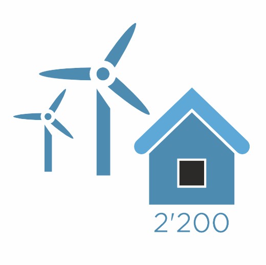 Bereits wenn der Wind unter 10 Stundenkilometer bläst, beginnt eine Windenergieanlage Strom zu produzieren. Auf der Fläche eines Einfamilienhauses produziert eine Windenergieanlage Strom für bis zu 10’000 Menschen. Oder während 30 Jahren Strom für bis zu 5’000 Elektrofahrzeuge, die jährlich 15’000 km fahren.